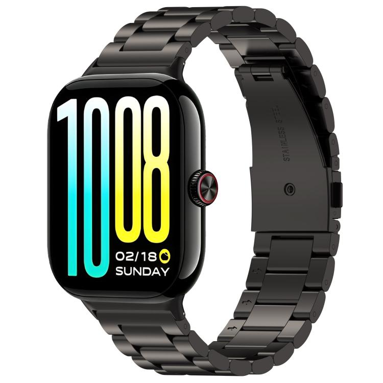Correa de acero inoxidable con hebilla plana de tres cuentas para VivoWatch GT 2 / iQOO Watch GT 2 (negra)