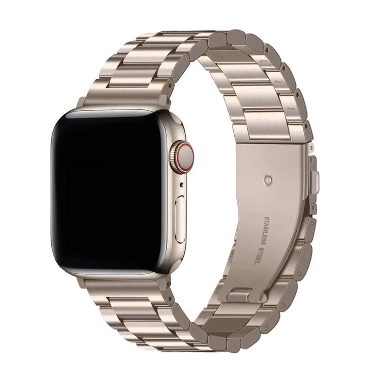 Correa de acero inoxidable con tres cuentas y película curva 3D para Apple Watch Series 42 mm (Starlight)