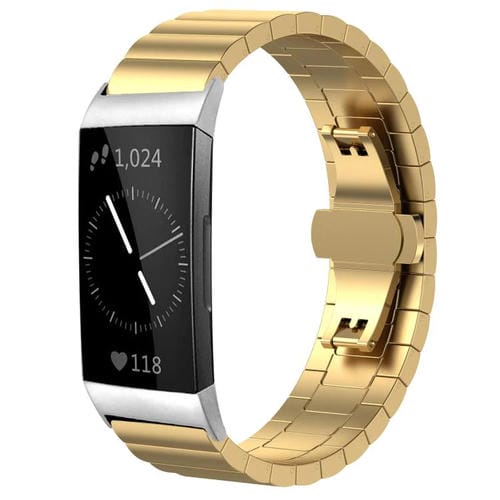 Correa de acero inoxidable macizo de bambú de una sola cuenta para Fitbit Charge 4/3 de 18 mm xDfind (dorada)
