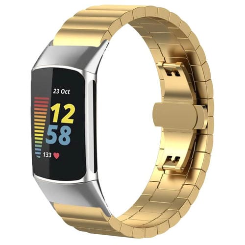 Correa de acero inoxidable macizo de bambú de una sola cuenta para Fitbit Charge 6/5 de 18 mm xDfind (dorada)