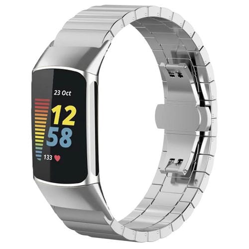 Correa de acero inoxidable macizo de bambú de una sola cuenta para Fitbit Charge 6/5 de 18 mm xDfind (plateada)