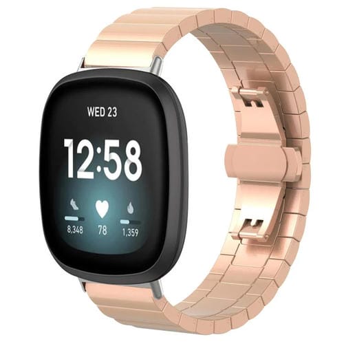 Correa de acero inoxidable macizo de bambú de una sola cuenta para Fitbit Versa 4/3/Sense2/1 (20 mm) xDfind (oro rosa)