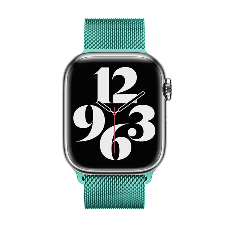 Correa de acero inoxidable milanesa con película curva 3D para Apple Watch Series 38 mm (azul suave)