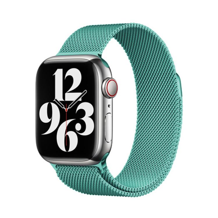 Correa de acero inoxidable milanesa con película curva 3D para Apple Watch Series 42 mm (azul suave)