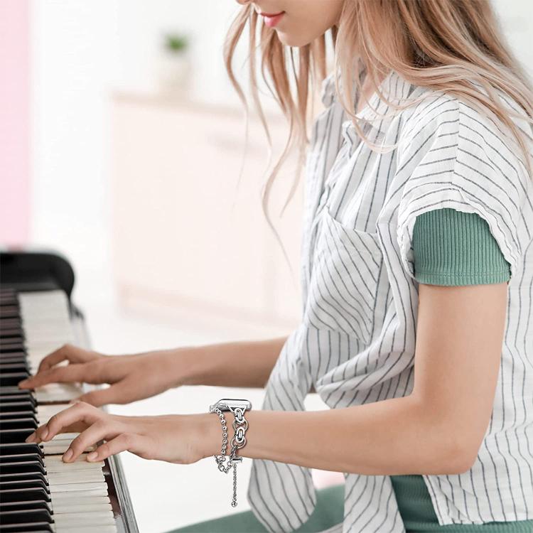 Correa de aleación de zinc con cadena de cuentas de doble círculo para Apple Watch de 46 mm, 49 mm, 45 mm y 44 mm (plateada)