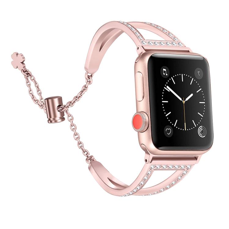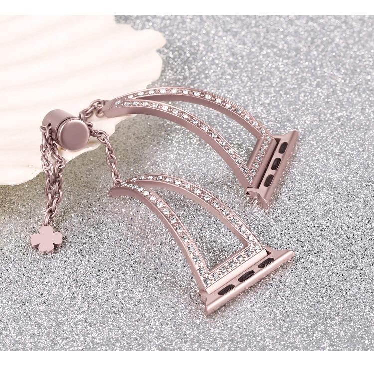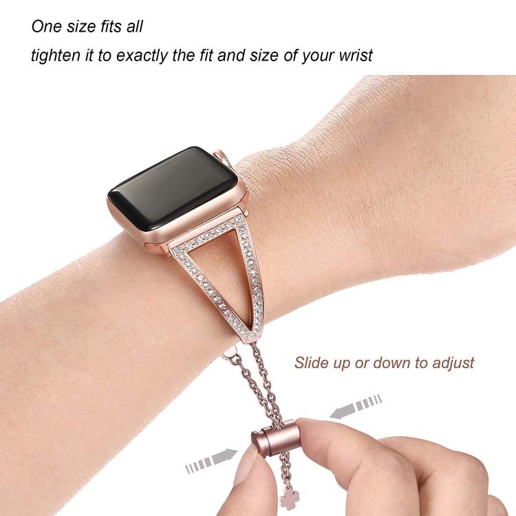Correa de aleación de zinc con diamantes en forma de V para Apple Watch de 42 mm, 41 mm, 40 mm y 38 mm (oro rosa)