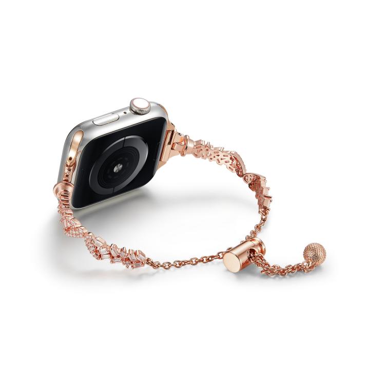 Correa de aleación de zinc con diamantes triturados Wings para Apple Watch de 42 mm, 41 mm, 40 mm y 38 mm (oro rosa)