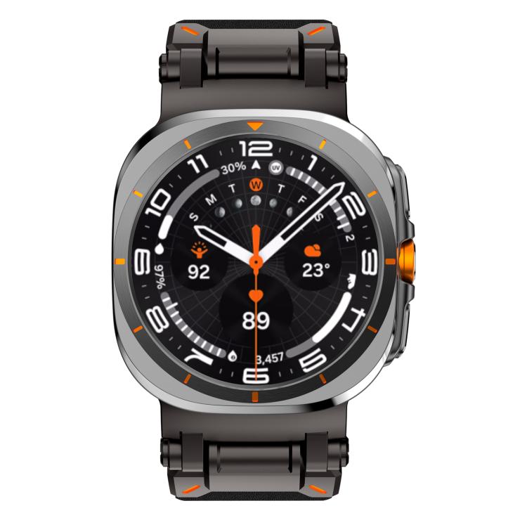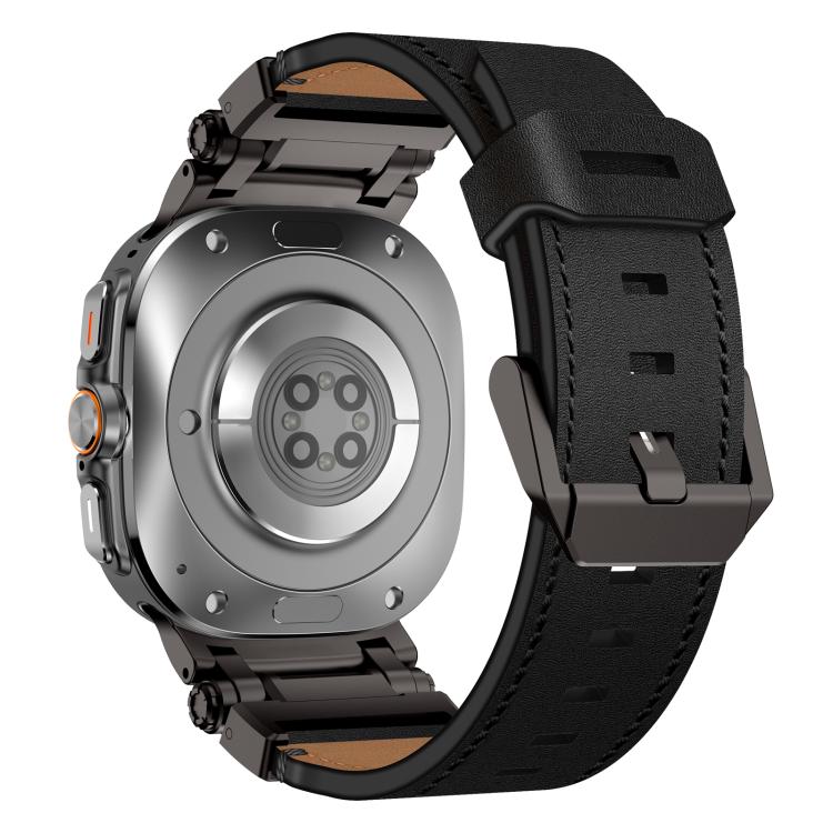 Correa de cuero con cabeza de acero inoxidable Explorer para Samsung Galaxy Watch Ultra de 47 mm (negro)