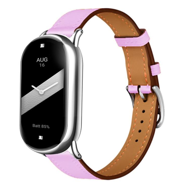 Correa de cuero con hebilla plateada fina para Xiaomi Smart Band 10/9/8 (morado claro)