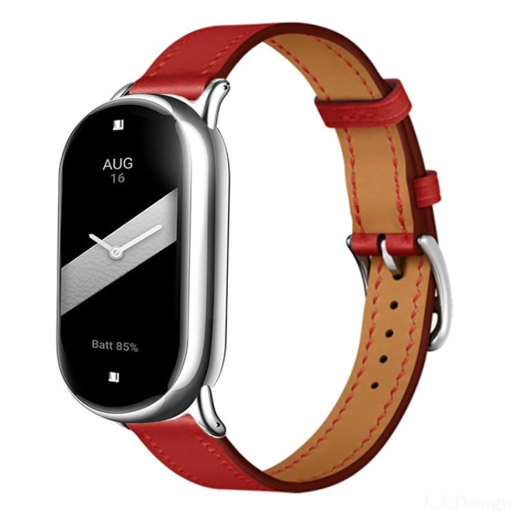 Correa de cuero con hebilla plateada fina para Xiaomi Smart Band 10/9/8 (roja)