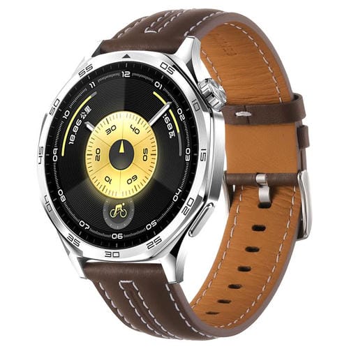 Correa de cuero con hebilla plateada para Huawei Watch GT 6 de 46 mm (marrón oscuro)