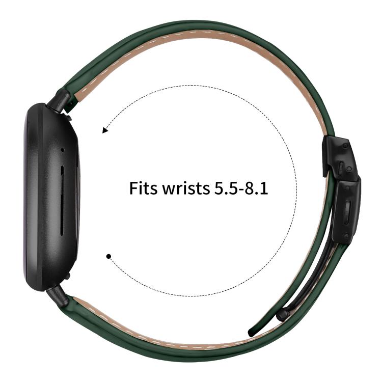 Correa de cuero con hebilla trasera de tortuga negra y textura de lichi para Fitbit Versa 3/4 (verde)