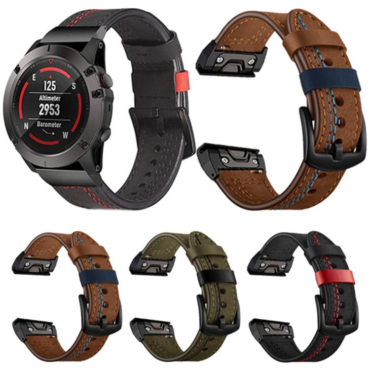 Correa de cuero de siete líneas para Garmin de 26 mm (marrón)
