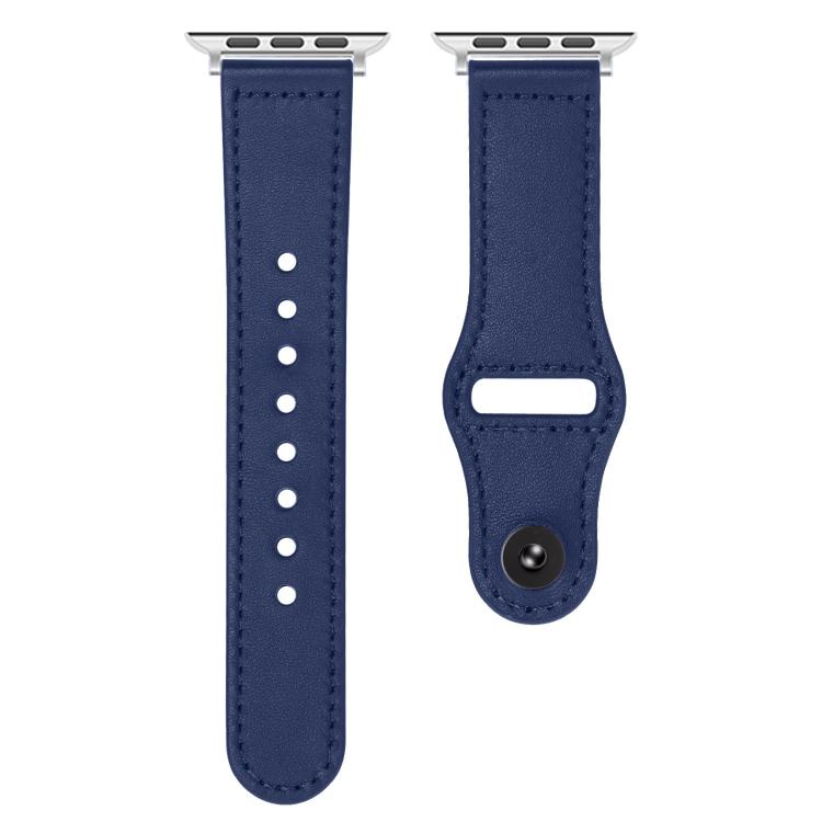 Correa de cuero genuino con hebilla inversa para Apple Watch de 42 mm, 41 mm, 40 mm y 38 mm (azul medianoche)