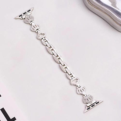 Correa de metal con diamantes y cadena de corona para Apple Watch de 38, 40, 41 y S11 de 42 mm (luz de estrellas)