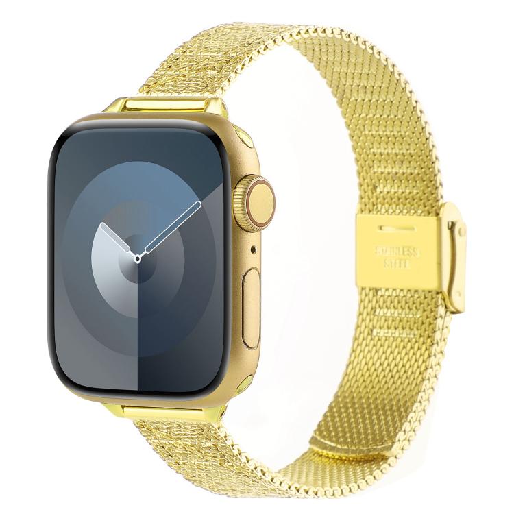 Correa de metal milanesa con relieve para Apple Watch de 42 mm, 41 mm, 40 mm y 38 mm (rombo dorado)