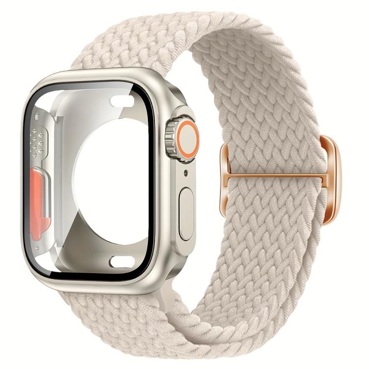 Correa de nailon con hebilla de escalera para Apple Watch Series 40 mm, con funda de PC con película Ultra de 49 mm (Starlight)
