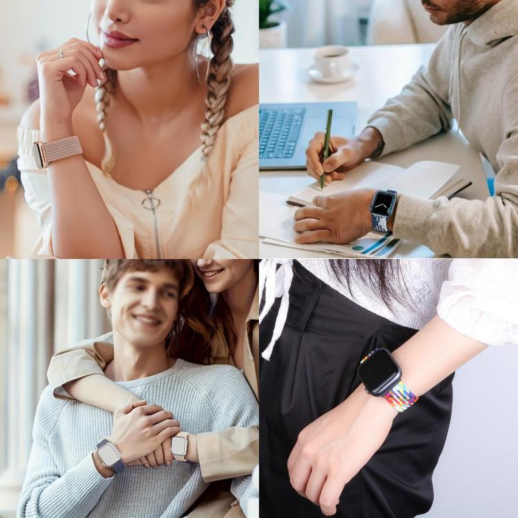 Correa de nailon con hebilla de escalera para Apple Watch Series 41 mm con cubierta de policarbonato esmerilado (arcoíris)