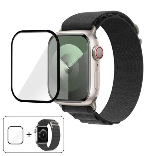 Correa de nailon con hebilla y película curva 3D para Apple Watch Series 10 de 46 mm (gris oscuro)