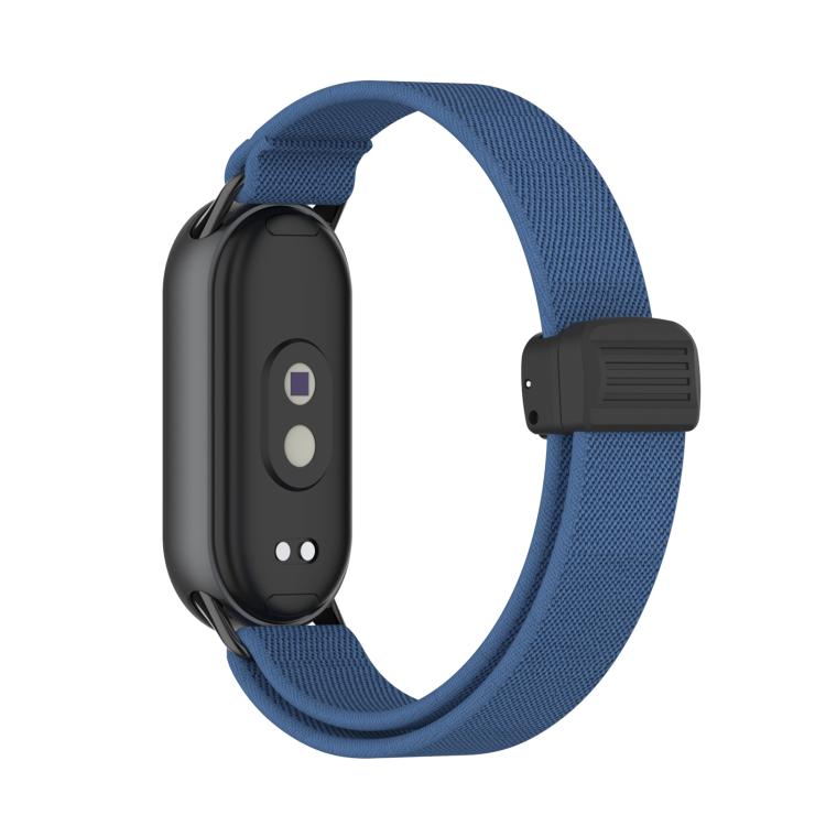 Correa de nailon elástica con hebilla magnética de plástico y cabeza de metal para Xiaomi Smart Band 10/9/8 (azul frío)