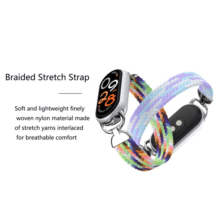 Correa de nailon tejido con cabeza de metal para Xiaomi Smart Band 10/9/8, talla M (arcoíris)