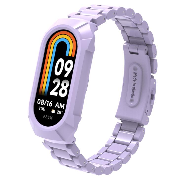 Correa de plástico con tres cuentas integradas para Xiaomi Smart Band 9/9 NFC/8/8 NFC (morado claro)