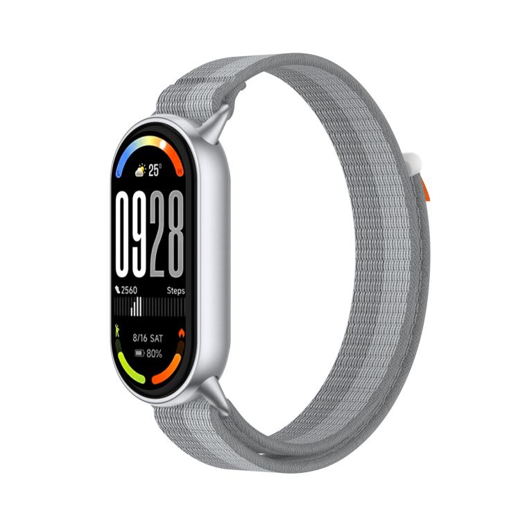 Correa de reloj con cierre de velcro de nailon para Xiaomi Smart Band 10/9/8 (plateada)