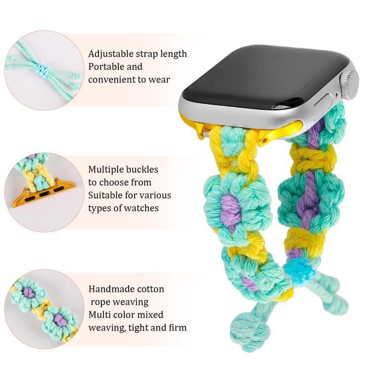 Correa de reloj con cordón de cáñamo y flores tejidas para Apple Watch de 46 mm, 49 mm, 45 mm y 44 mm (verde y blanco)