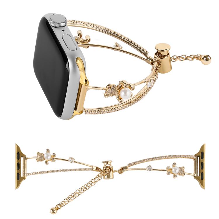 Correa de reloj con incrustaciones de cobre y circonitas de oso para Apple Watch de 46 mm, 49 mm, 45 mm y 44 mm (dorada)