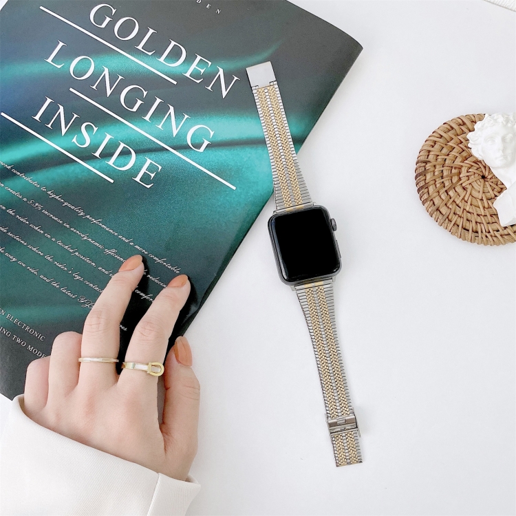 Correa de Reloj Acero Doble Línea para Apple Watch Ultra 49mm Series 8 7 SE 2 6 5 4 3 2 1 (Oro Plateado)