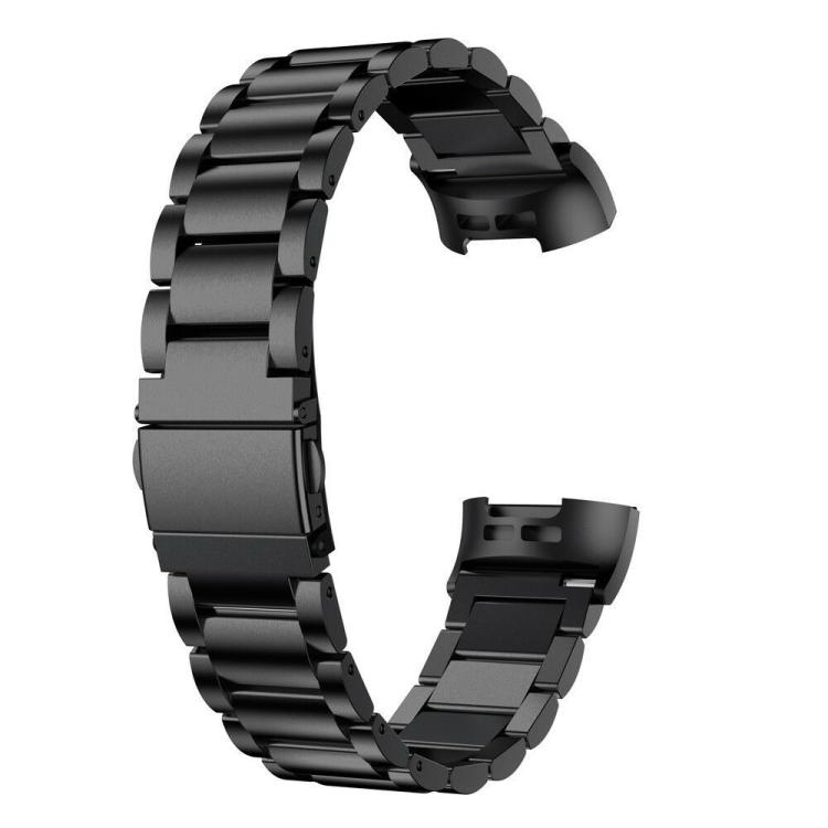 Correa de reloj de aleación de titanio con hebilla plana de tres cuentas para Fitbit Charge 4/3 (negra)