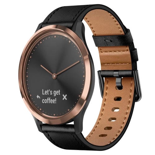 Correa de Reloj de Cuero con Interruptor de Botón de Metal de 20mm para Garmin Vivomove Hr (Negra)