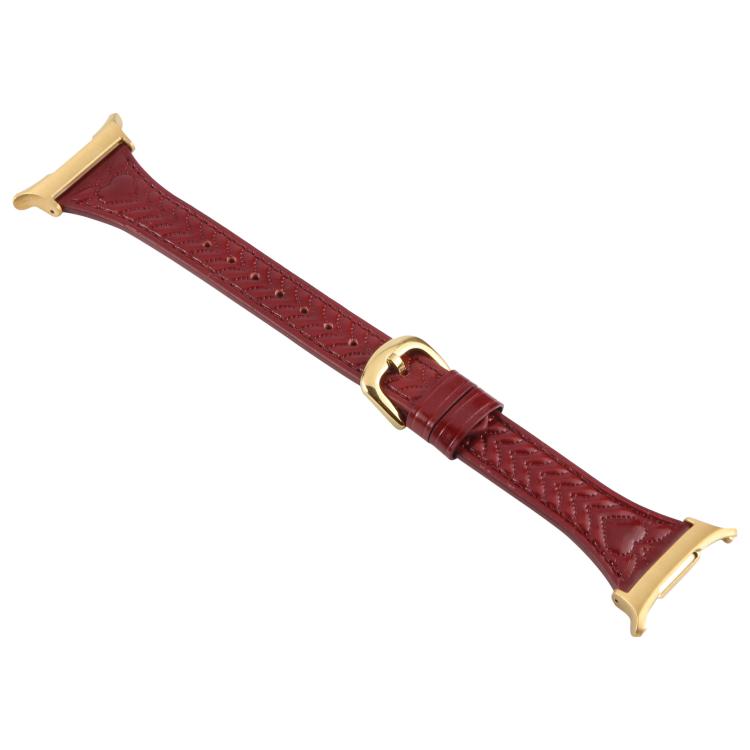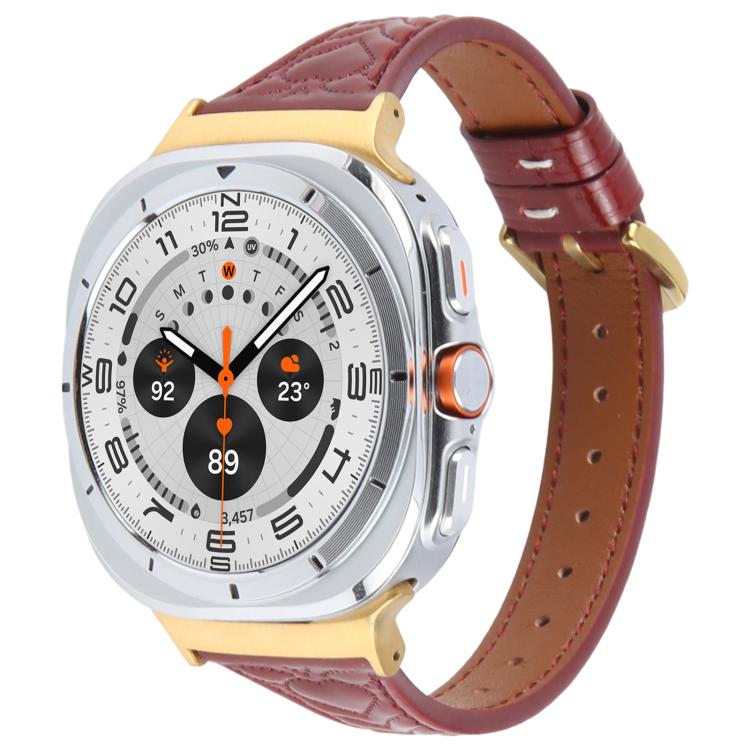 Correa de reloj de cuero con relieve en forma de corazón y conector de metal para Samsung Galaxy Watch Ultra de 47 mm (rojo vino)
