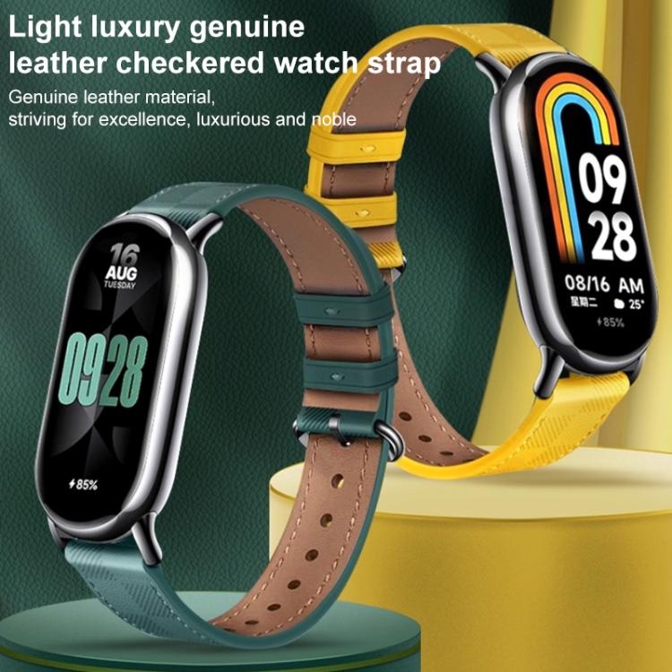 Correa de reloj de cuero con textura a cuadros xDfind para Xiaomi Smart Band 10/9/8 (negra)