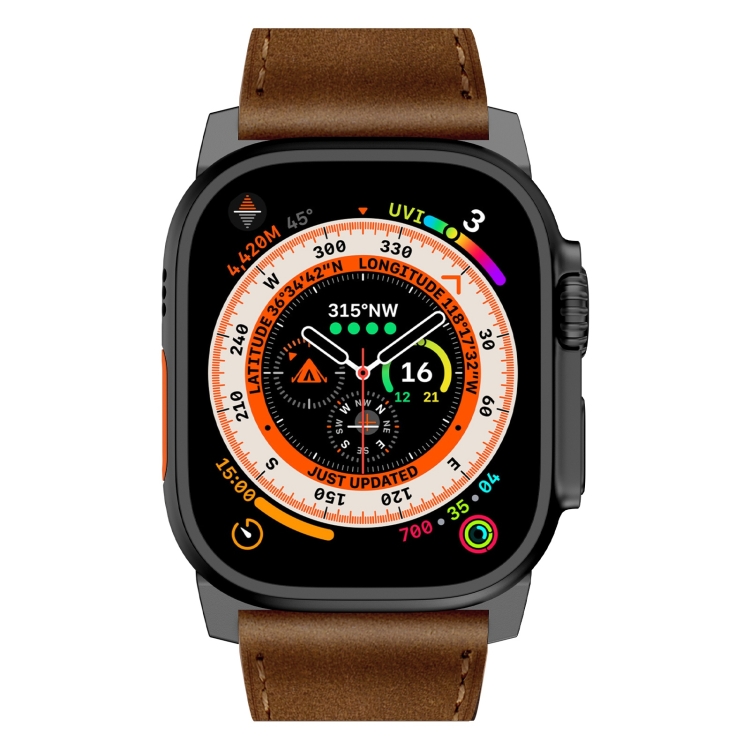Correa de Reloj de Cuero Grano Superior Wilderness 44mm para Apple Watch Se 2022 (Conector Negro Marrón Oscuro)