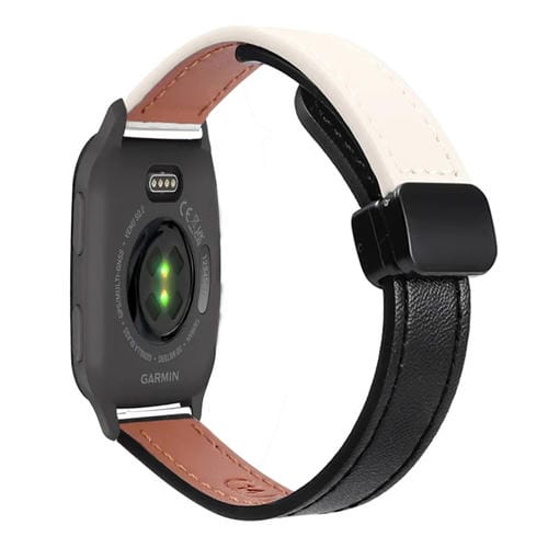 Correa de Reloj de Cuero Microfibra con Hebilla Magnética 20mm para Garmin Venu Sq (Negro y Albaricoque)