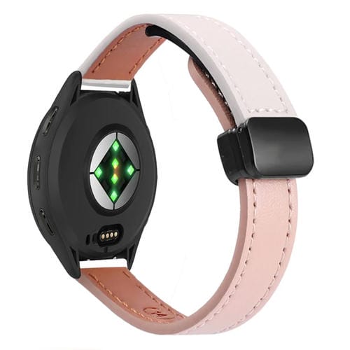 Correa de Reloj de Cuero Microfibra con Hebilla Magnética 18mm para Garmin Venu 3S (Rosa y Albaricoque)