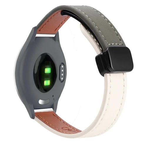 Correa de Reloj de Cuero de Microfibra con Hebilla Magnética 18mm para Garmin Vivoactive 4S (Verde Albaricoque y Aguacate)