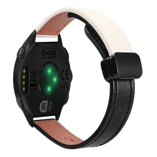 Correa de Reloj Cuero Microfibra 20mm con Hebilla Magnética para Garmin Forerunner 645 (Negro y Albaricoque)