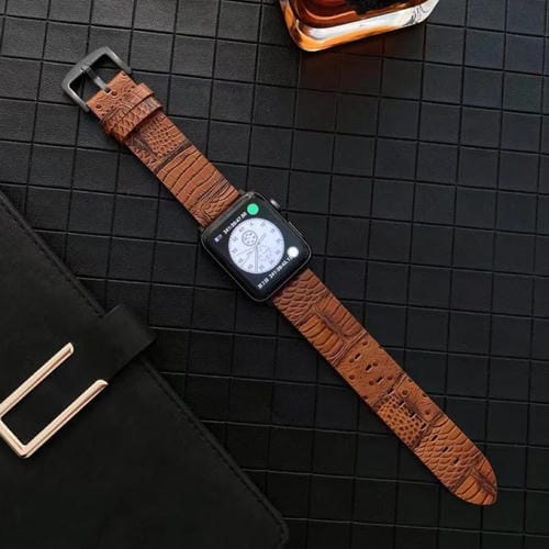 Correa de Reloj Cuero Genuino Cocodrilo Avestruz para Apple Watch Ultra 49mm y Series 8 7 45mm Marrón