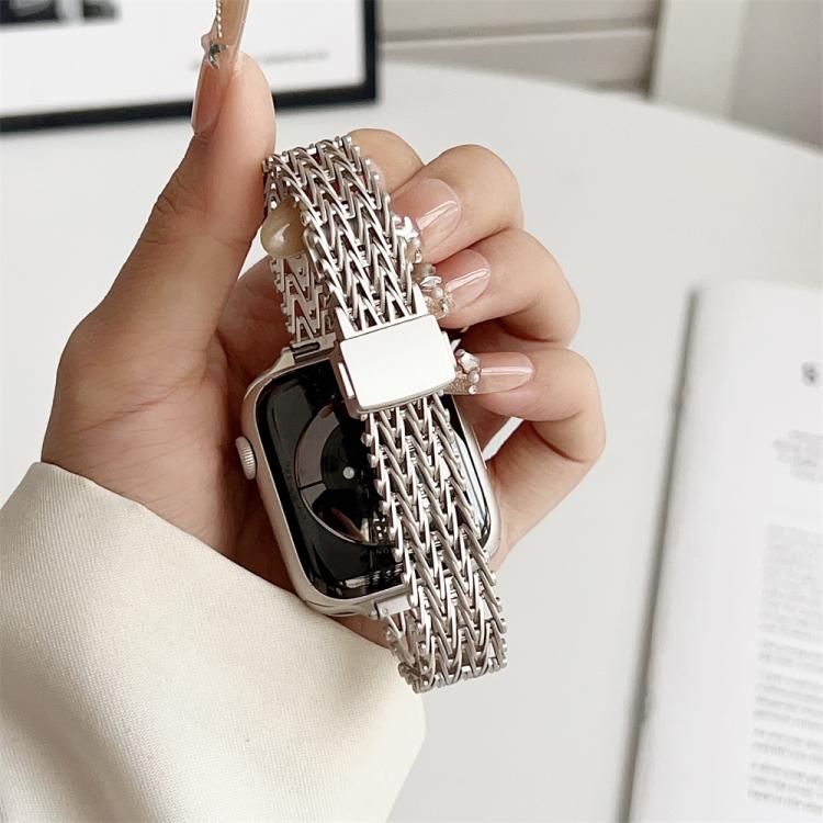 Correa de reloj de malla metálica de acero delgada con cierre magnético para Apple Watch de 42 mm / 41 mm / 40 mm / 38 mm (Starlight)