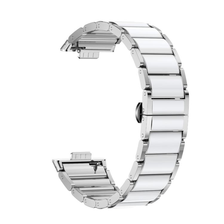 Correa de reloj de metal con hebilla de mariposa blanca de cerámica para Huawei Watch Fit4 / Fit4 Pro / Fit3 (plateada)