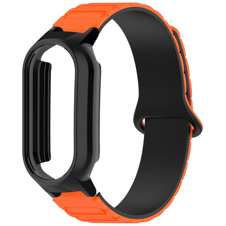 Correa de reloj de silicona magnética en forma de I para Xiaomi Smart Band 9/9 NFC PC Watch Frame (naranja + negro)