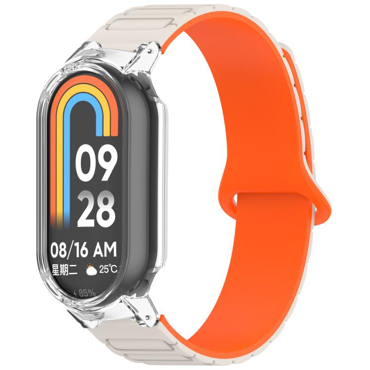 Correa de reloj de silicona magnética en forma de I para Xiaomi Smart Band 9/9 NFC PC Watch Frame (Starlingt + transparente)