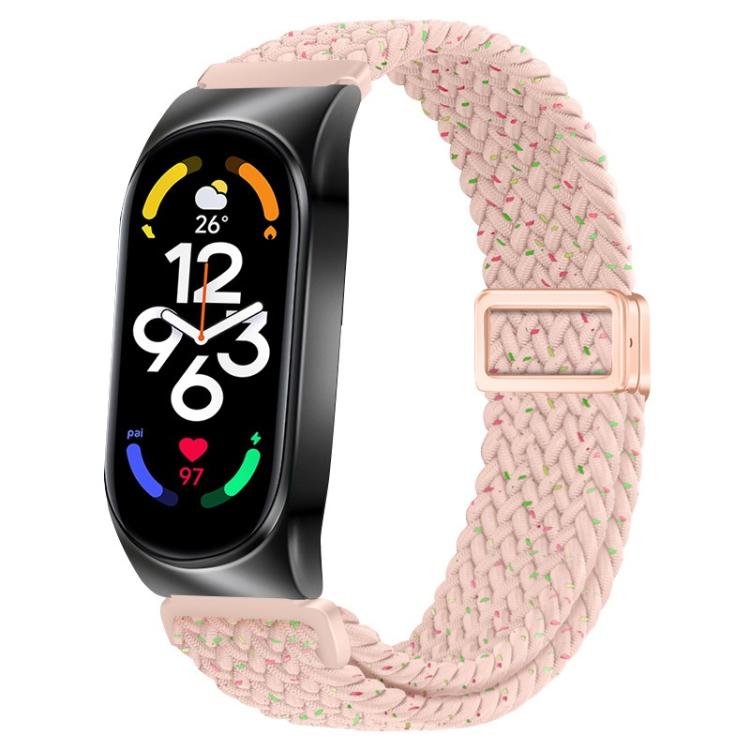 Correa de reloj elástica trenzada de nailon con hebilla magnética y marco de metal para Xiaomi Smart Band 9/8 (rosa estrella)