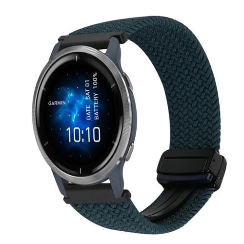 Correa de Reloj Trenzada Garmin Venu 2 22mm con Hebilla Magnética (Verde Bosque)