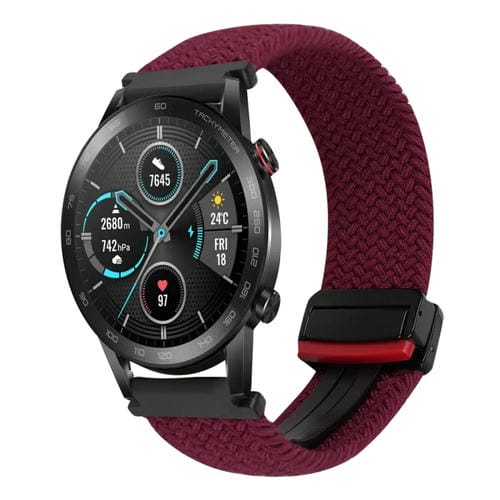 Correa de Reloj Trenzada con Hebilla Magnética para Honor Magic Watch 2 42mm (Rojo Vino)