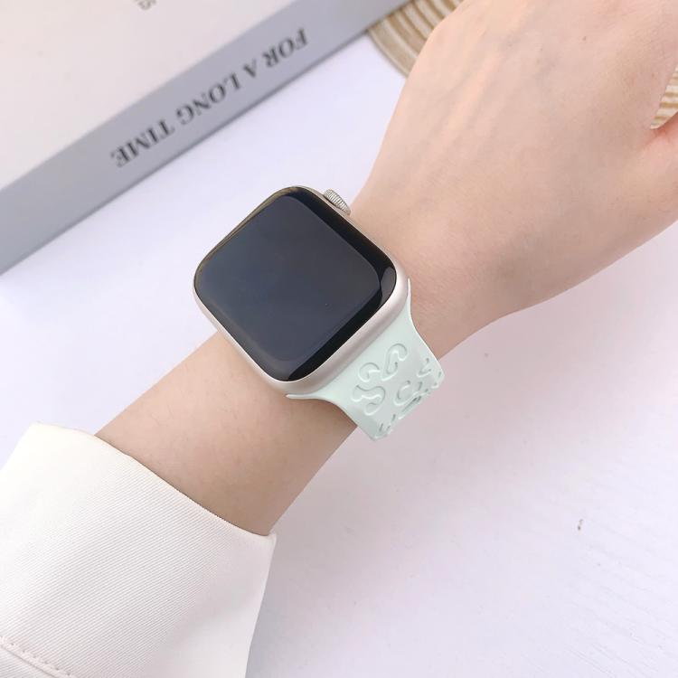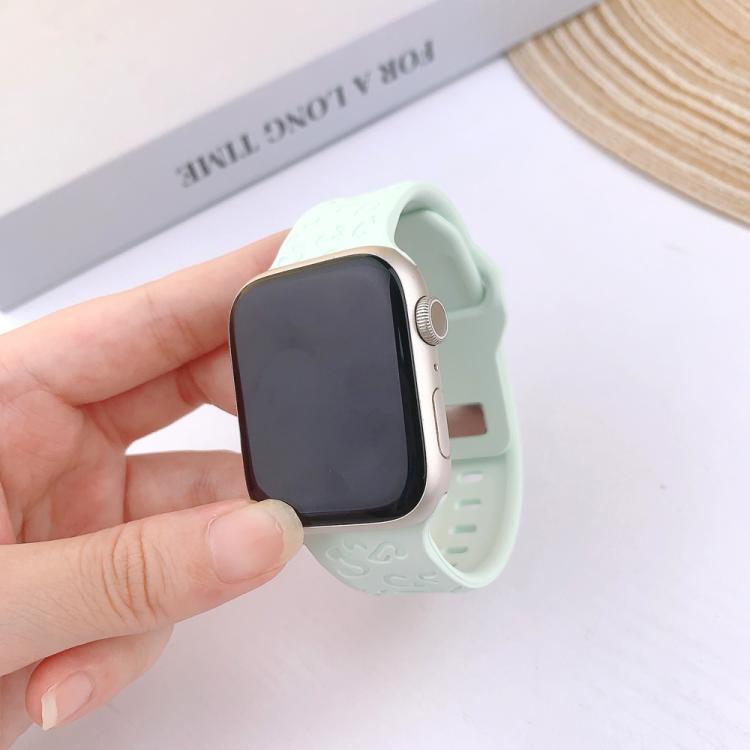 Correa de silicona con hebilla cóncava de leopardo para Apple Watch de 42 mm, 41 mm, 40 mm y 38 mm (menta claro)