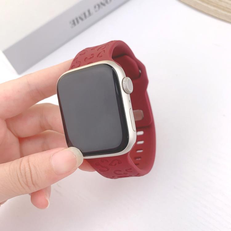Correa de silicona con hebilla cóncava de leopardo para Apple Watch de 42 mm, 41 mm, 40 mm y 38 mm (rojo vino)