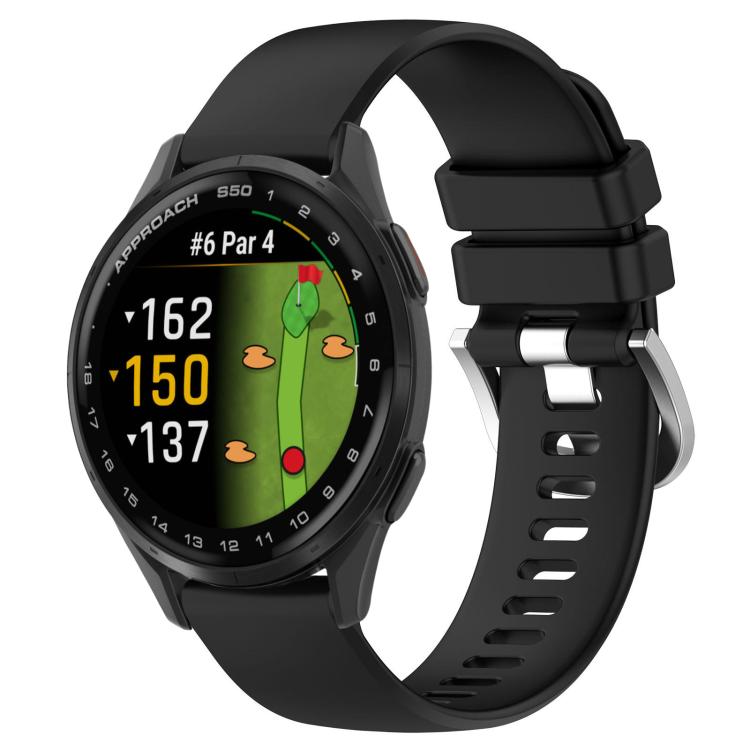 Correa de silicona con hebilla plateada brillante líquida para Garmin Approach S50 de 20 mm (negra)